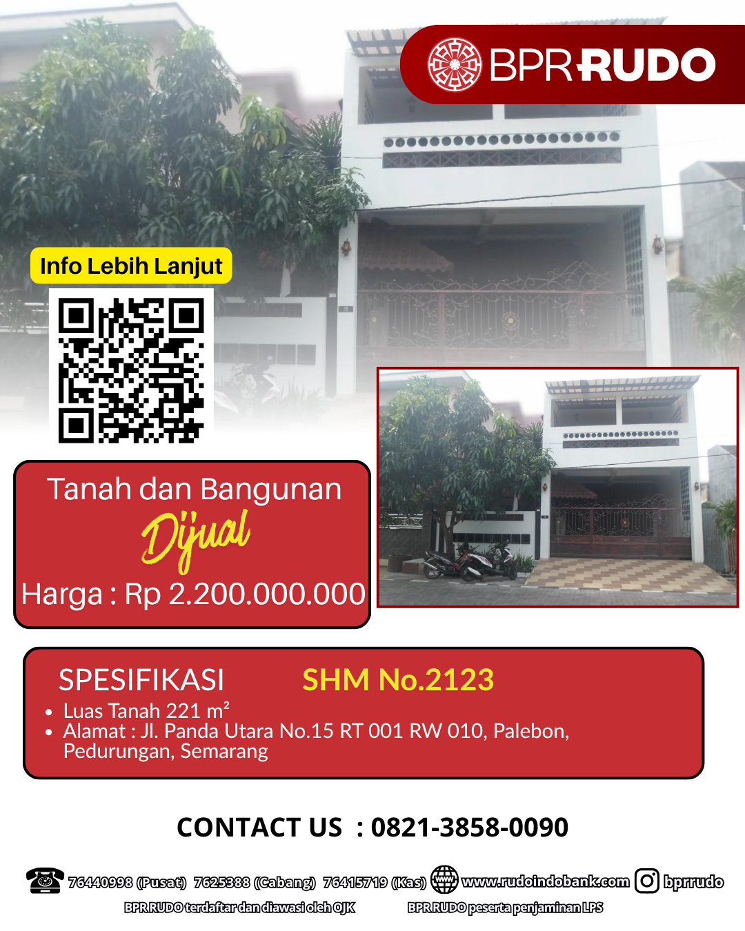 SHM No.2132, dengan Luas Tanah 221 M2, yang terletak di Jl. Panda Utara No.15 RT 001 RW 010, Palebon, Pedurungan, Semarang